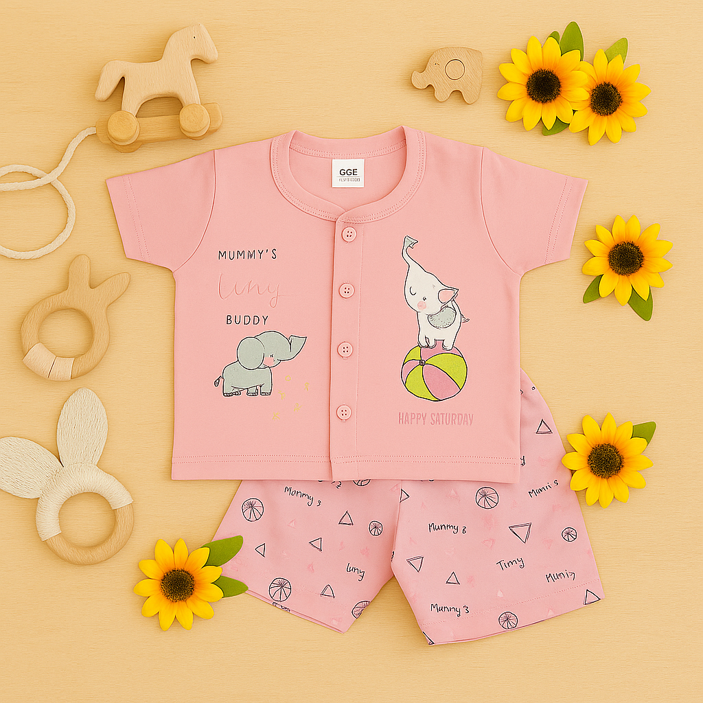 🐘 Cute Elephant Design: Playful elephants with the text “Mummy’s Tiny Buddy” and “Happy Saturday” make this set fun, lovable, and perfect for weekend cuddles.